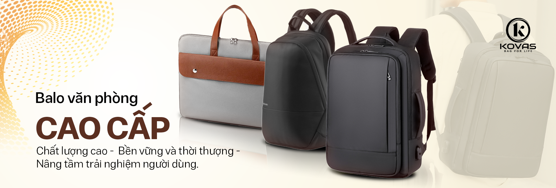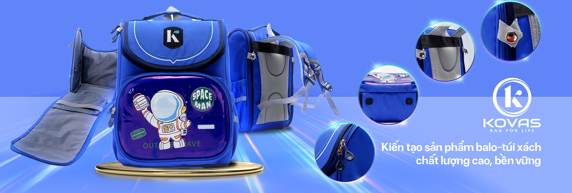 KOVAS là thương hiệu Việt tiên phong trong lĩnh vực balo và túi xách, với tầm nhìn dẫn đầu thị trường và khẳng định vị thế trên trường quốc tế. KOVAS cam kết kiến tạo các sản phẩm chất lượng cao, bền vững và thời thượng, mang lại trải nghiệm vượt trội cho người dùng. Lấy giá trị cốt lõi làm kim chỉ nam, KOVAS luôn tận tâm, sáng tạo, tinh tế trong từng chi tiết và hướng tới sự phát triển xanh. Đồng hành cùng khách hàng, đối tác và cộng đồng, KOVAS không ngừng đổi mới để mang đến những giải pháp tiên phong và bền vững trên mọi hành trình.